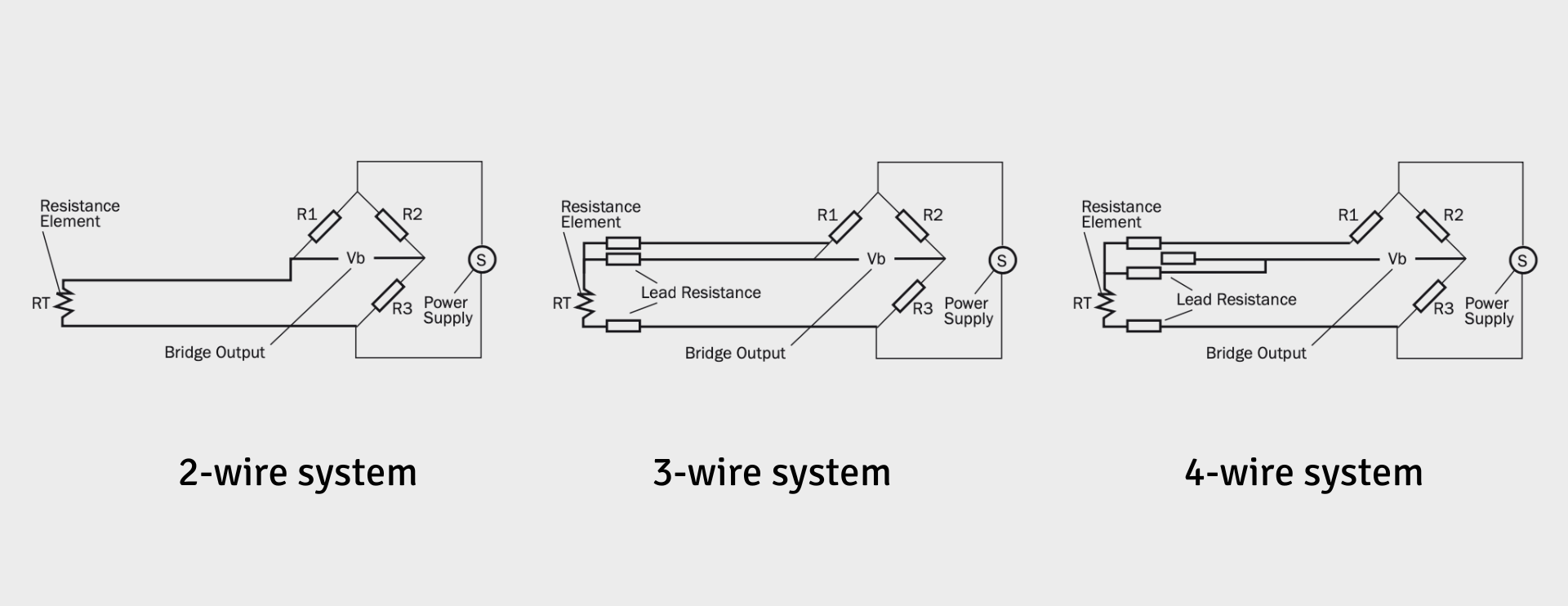 - 3-Wire PT100: General industrial applications with moderate accuracy requirements.